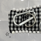 Materials: Cotton and/or Cambraia fabrics, beads, two personalized carabiners, and metal D-rings.