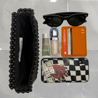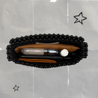 100% handmade bag, featuring nylon braided beads with strategic knots to ensure the safety of your belongings, and crafted with cambraia fabric for a soft finish. Snap buttons on the inside for attaching covers. Comes with two custom Letiblooms carabiners and 3D acrylic logo charm.